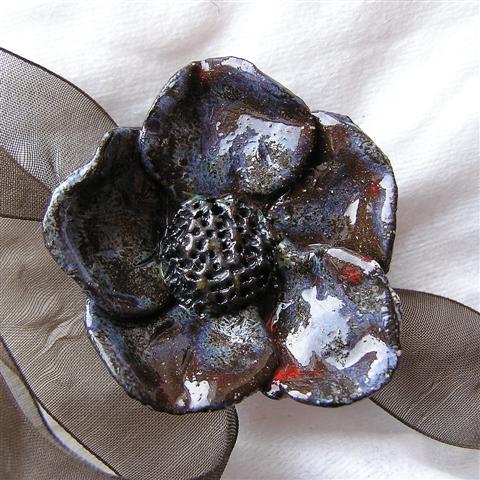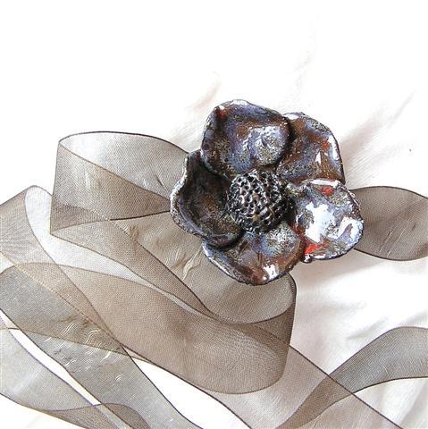 Ceramiczny kwiat na szyfonowej tasiemce.