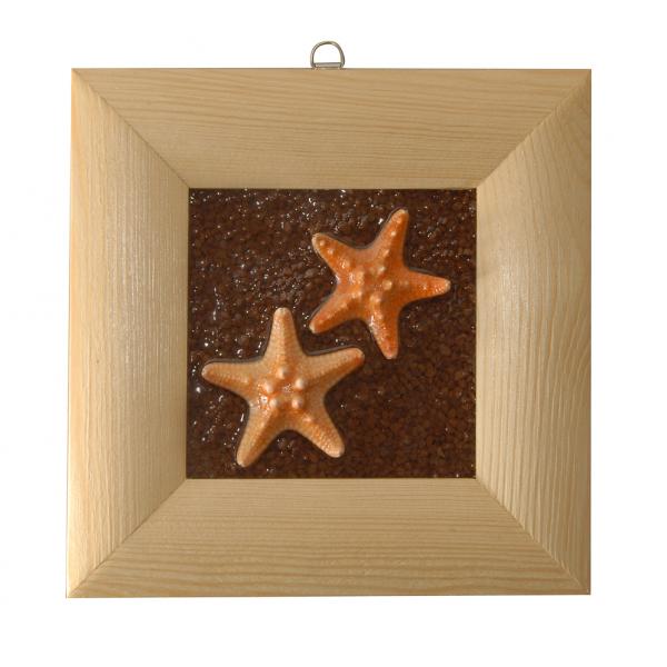 Dekor w ramce drewnianej - dwie rozgwiazdy