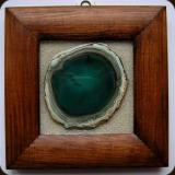 Piękny agat brazylijski ułożony na barwionym piasku kwarcowym i zanurzony w żywicy syntetycznej.