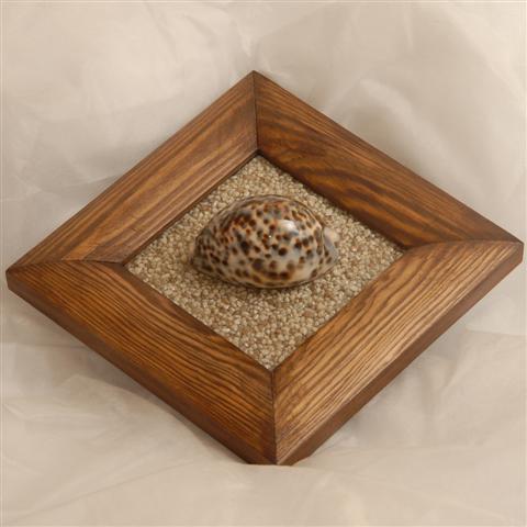Dekor w ramce drewnianej - muszla Cyprea tigris 1