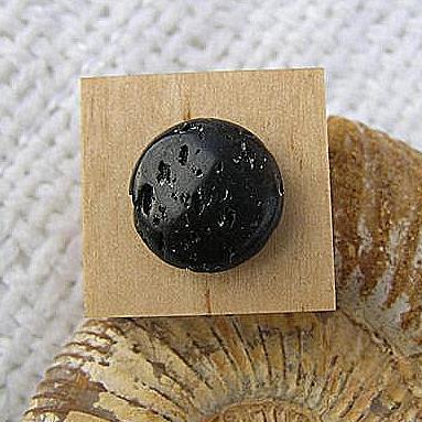 Pierścień z drewna brzozy i szlifowanej lawy w kształcie pastylki.