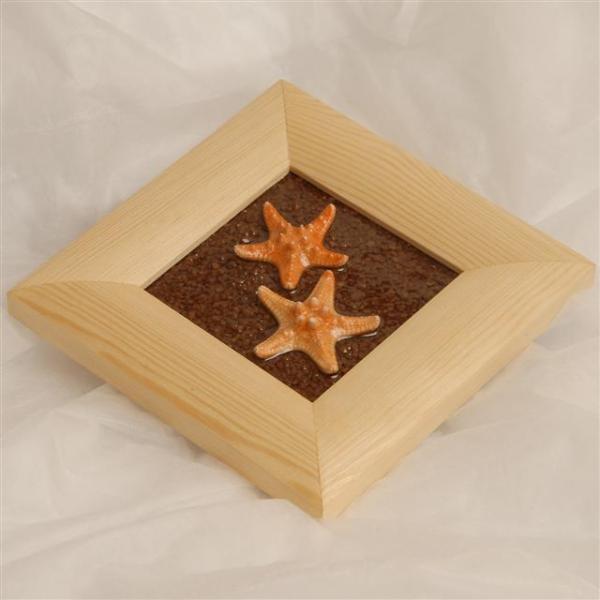 Dekor w ramce drewnianej - dwie rozgwiazdy